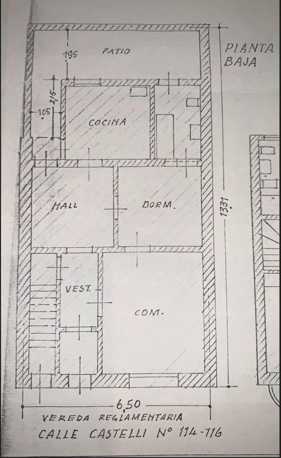 Construida en dos plantas sobre un lote de 6,5m de frente por 13,30 fondo. Total sup. estimada parcela: 86,5m2. Sup cub. aprox: 150m2